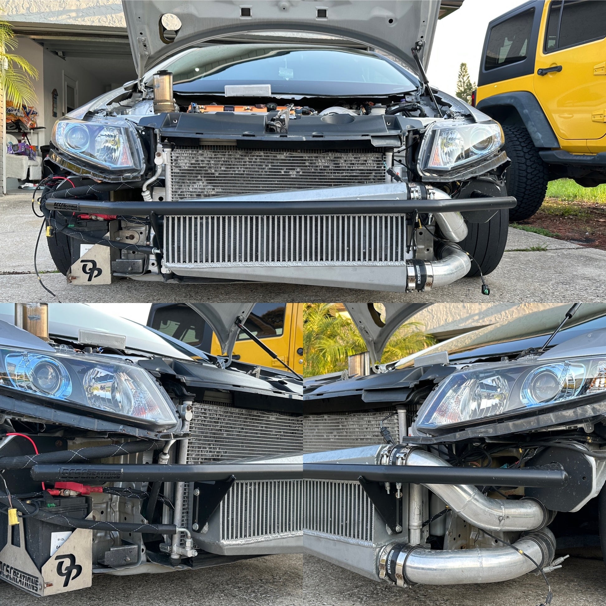 This bar replaces the unappealing factory bumper support beam and can be easily bolted onto the existing locations. Our crash bar was created to address the limited space when installing an intercooler. Made to be lighter than the OEM version, it provides superior strength, durability, and more room for access.