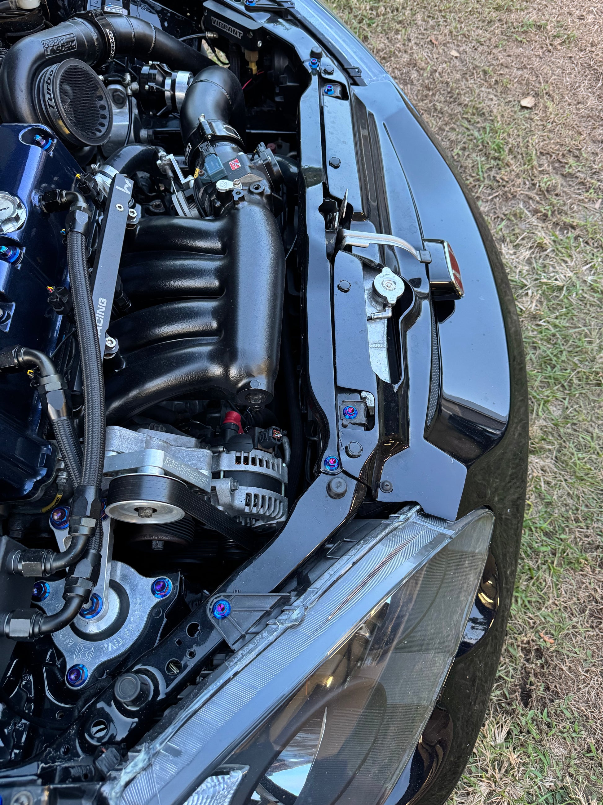 Catch cans are you be mounted in the passenger side. Abs unit must be delete or relocated we have both kits available. Our new catch can has a built in over flow tank you release any pressure from your radiator.
