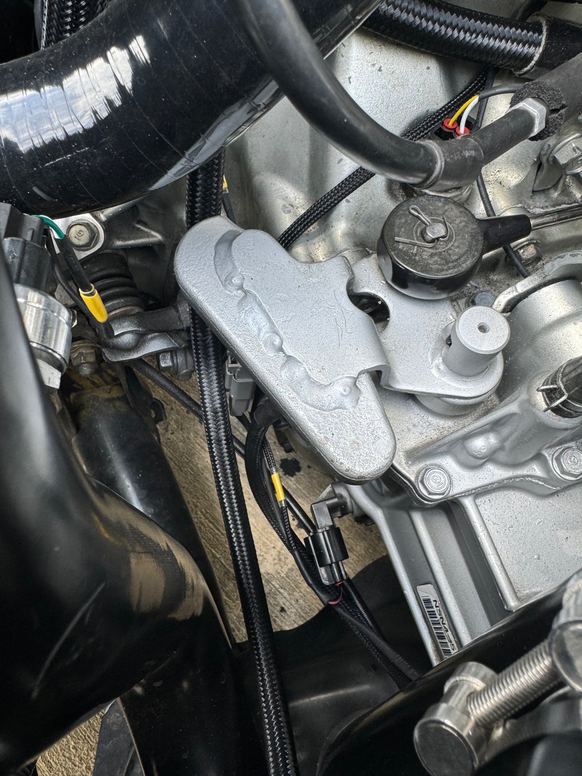 - Ground wire relocated to stud under coil pack cover (instead of front of the valve cover)