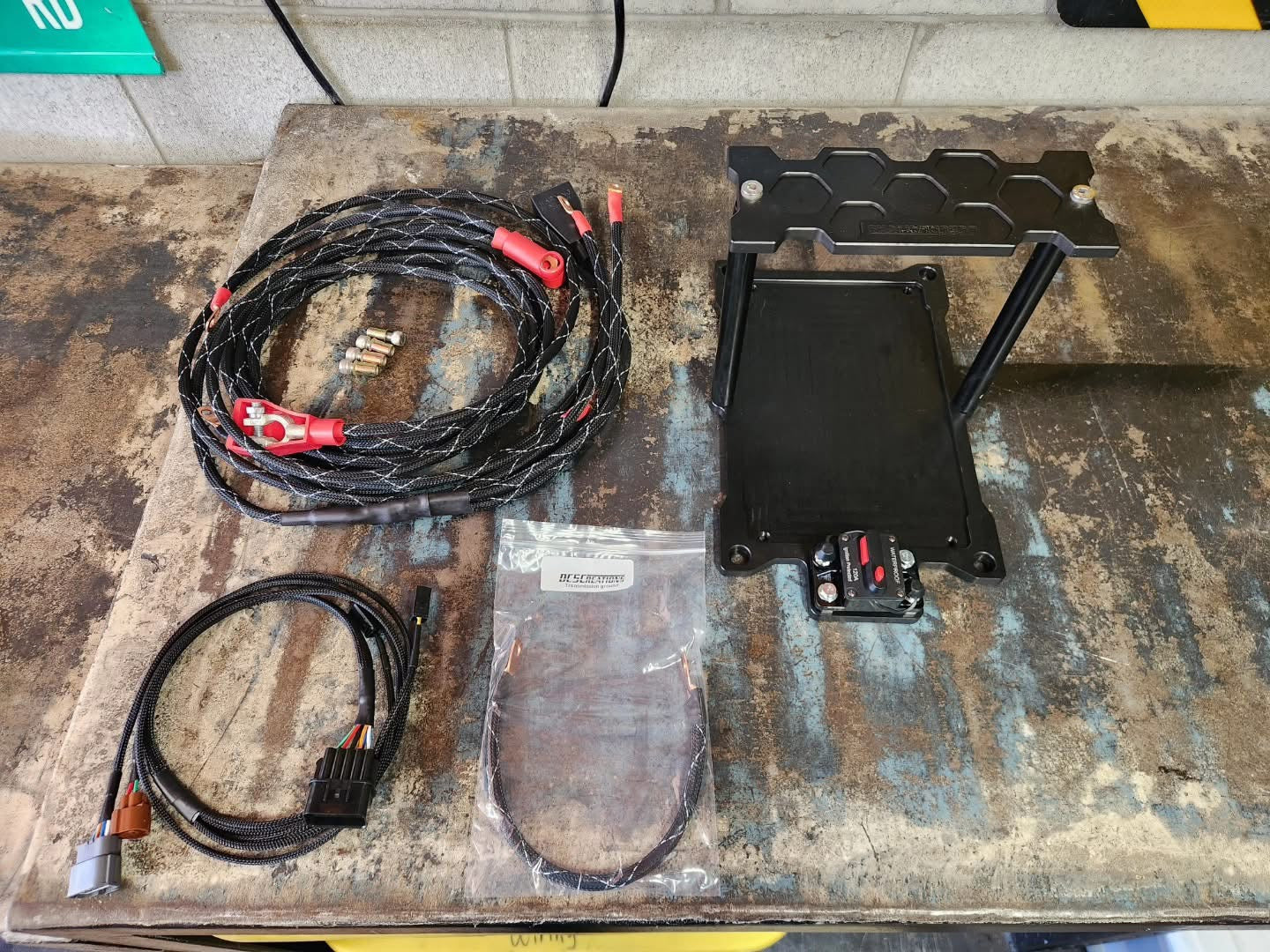 - If you adding charge harness with trunk tray will come breaker and necessary cables to safely relocated your battery to the trunk. Our cables are pre-measure already cut and crimp for you to just bolt everything up.