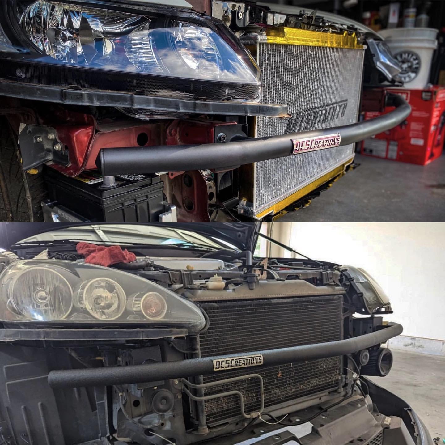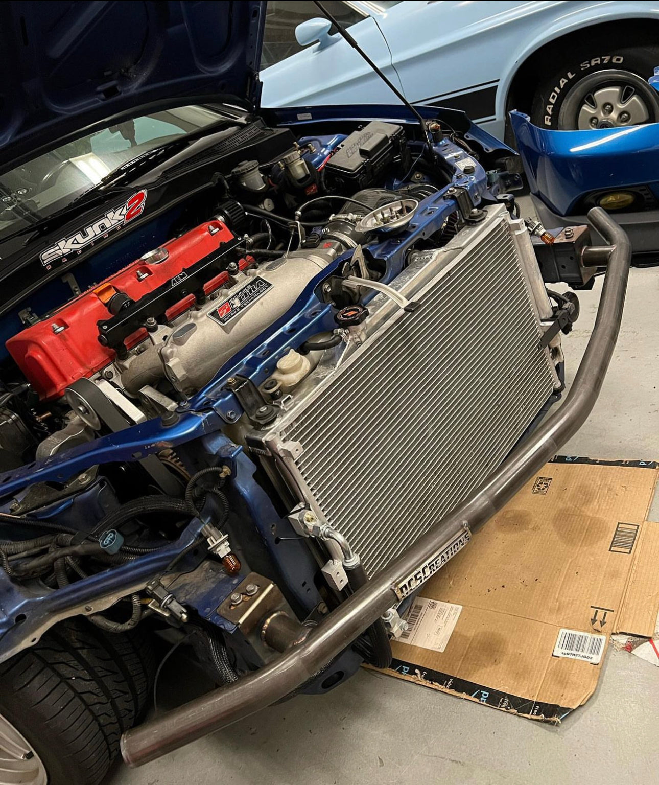 The Rsx & Ep3 Front Crash Bar by Dc5creations is specially designed for the 02/06 Rsx base or Type S and the 01/05 Honda Civic Ep3. This bar replaces the unappealing factory bumper support beam and can be easily bolted onto the existing locations. Our crash bar was created to address the limited space in the Rsx/Ep3 models when installing an intercooler. Made to be lighter than the OEM version, it provides superior strength, durability, and more room for access. Please note that it will not be compatible with the ep3 type R bumper. NO custom orders.