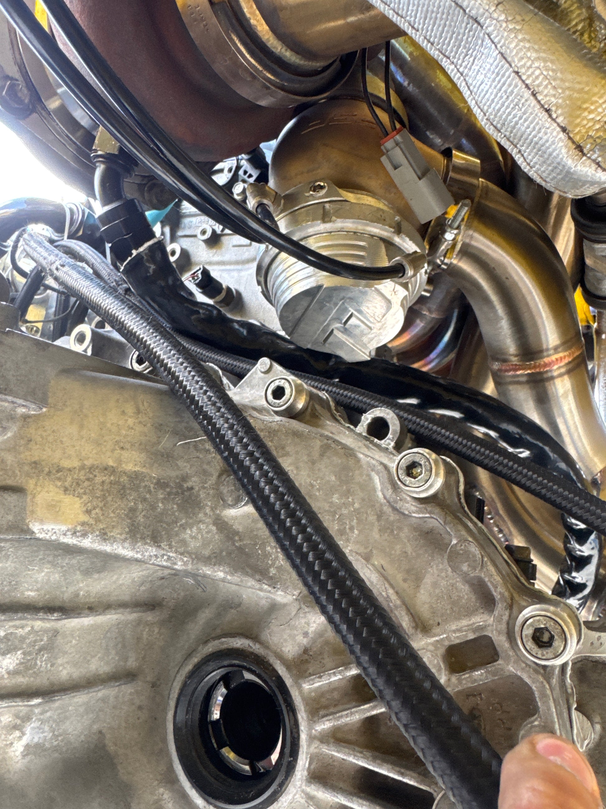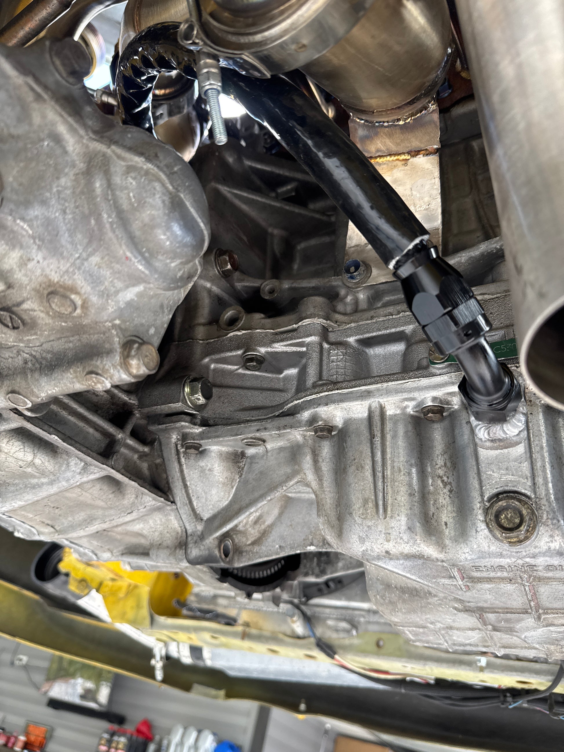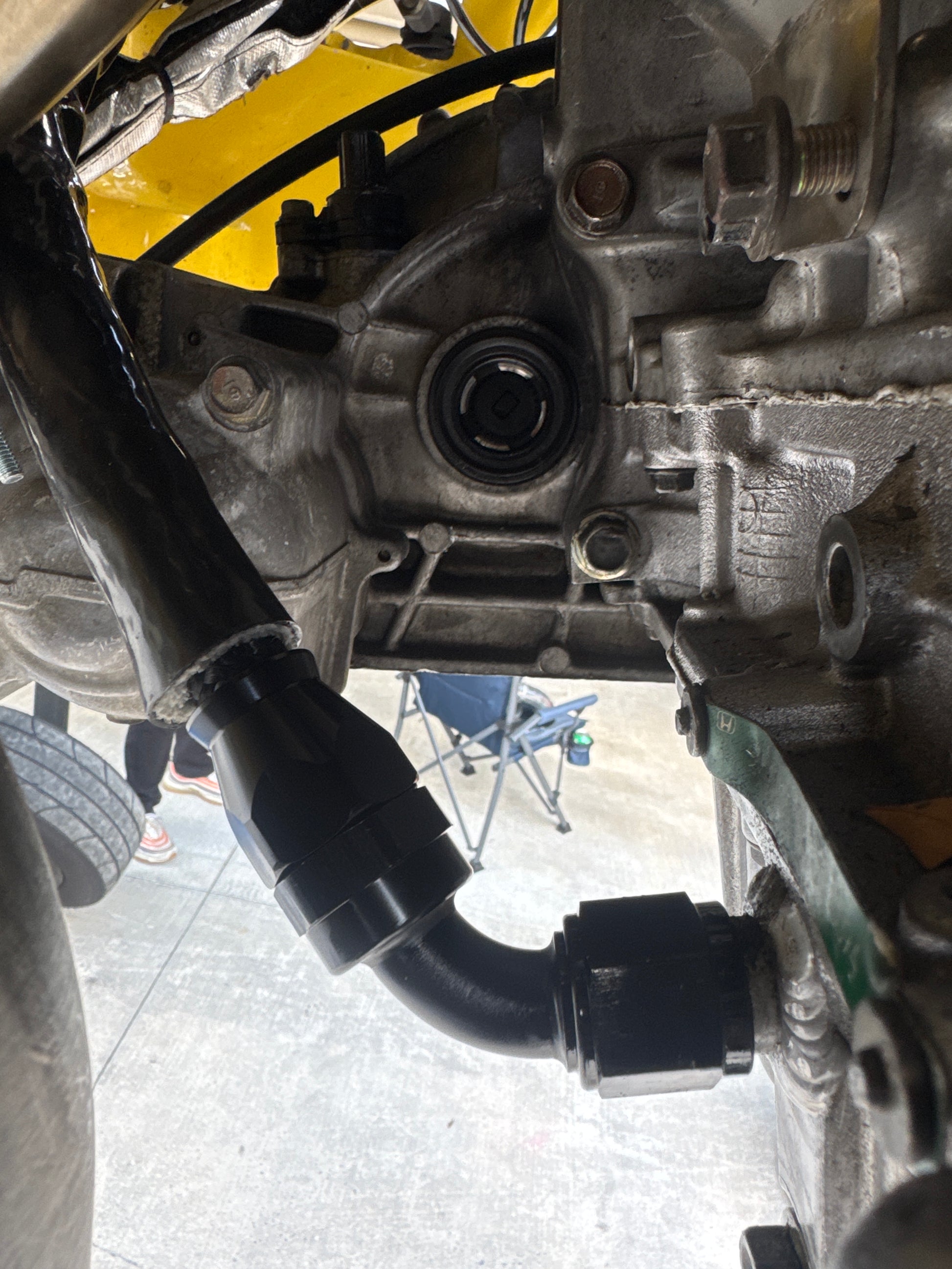 Dc5creations turbo drain line has been designed ONLY for k series turbo sidewinder manifold. Our line is 10an ptfe using a 45 degree angle fitting to the oil pain & 60 degree fitting will come off the turbo. The drain line will work with any manifold as long you run the 60 degree off the turbo.